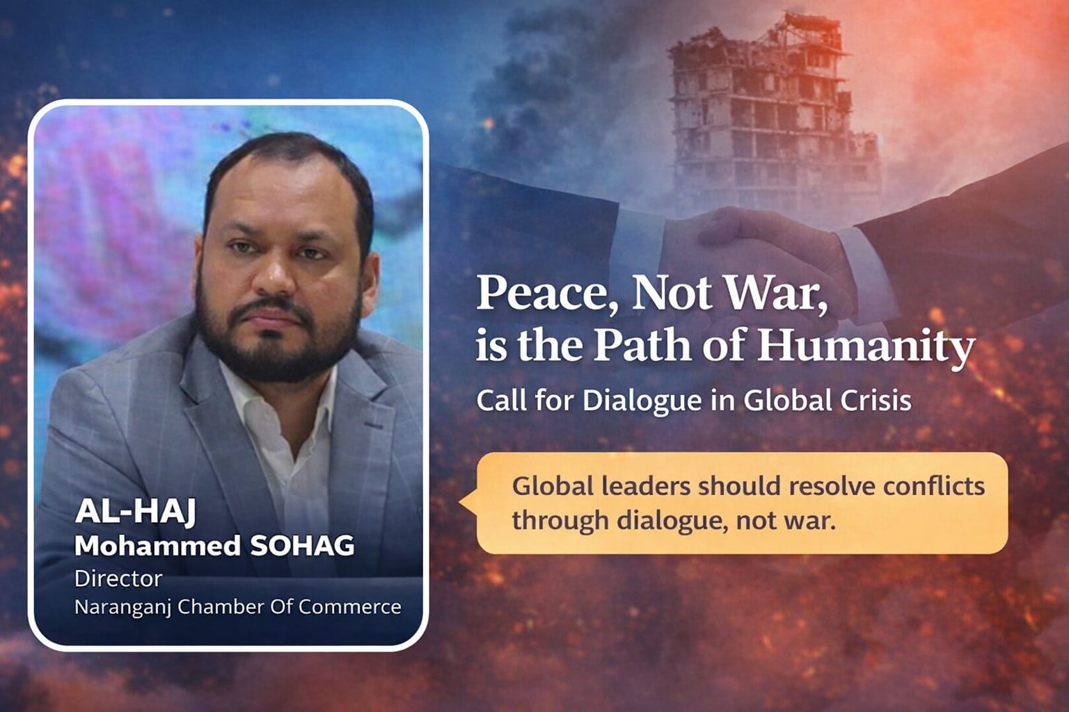 যুদ্ধ নয়, শান্তিই মানবতার পথ: আলহাজ্ব মোহাম্মদ সোহাগ