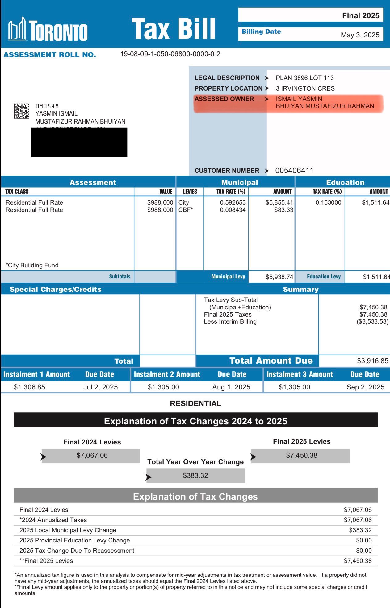 ২০২৫ সালের মে মাসে এই বাড়িটির ট্যাক্সও তাঁরা প্রদান করেছেন, যার রশিদ এই পোস্টে সংযুক্ত করা হয়েছে।