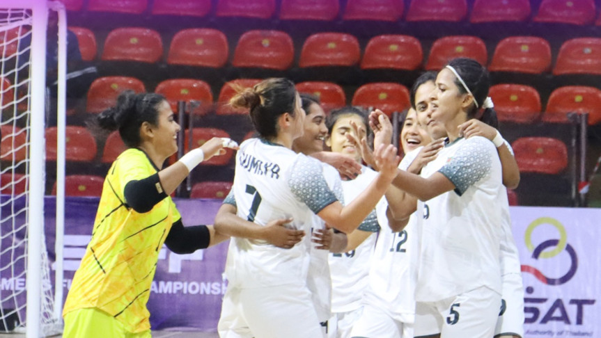 দীর্ঘ বিরতি শেষে ফুটসালে ফিরেই চমক দেখাচ্ছে বাংলাদেশ নারী ফুটসাল দল। থাইল্যান্ডে অনুষ্ঠিত হচ্ছে সাফ নারী ফুটসাল চ্যাম্পিয়নশিপ। সেখানে অপ্রতিরোধ্য বাংলাদেশ। চার ম্যাচ খেলা বাংলাদেশকে হারাতে পারেনি কোনো দলই।